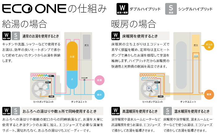 ハイブリッド給湯・暖房システムのしくみ(リンナイ潟Gコワンの場合)