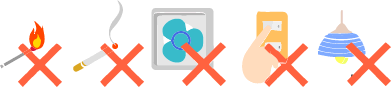 ライターやマッチなどの「火気」を絶対に使わないでください。